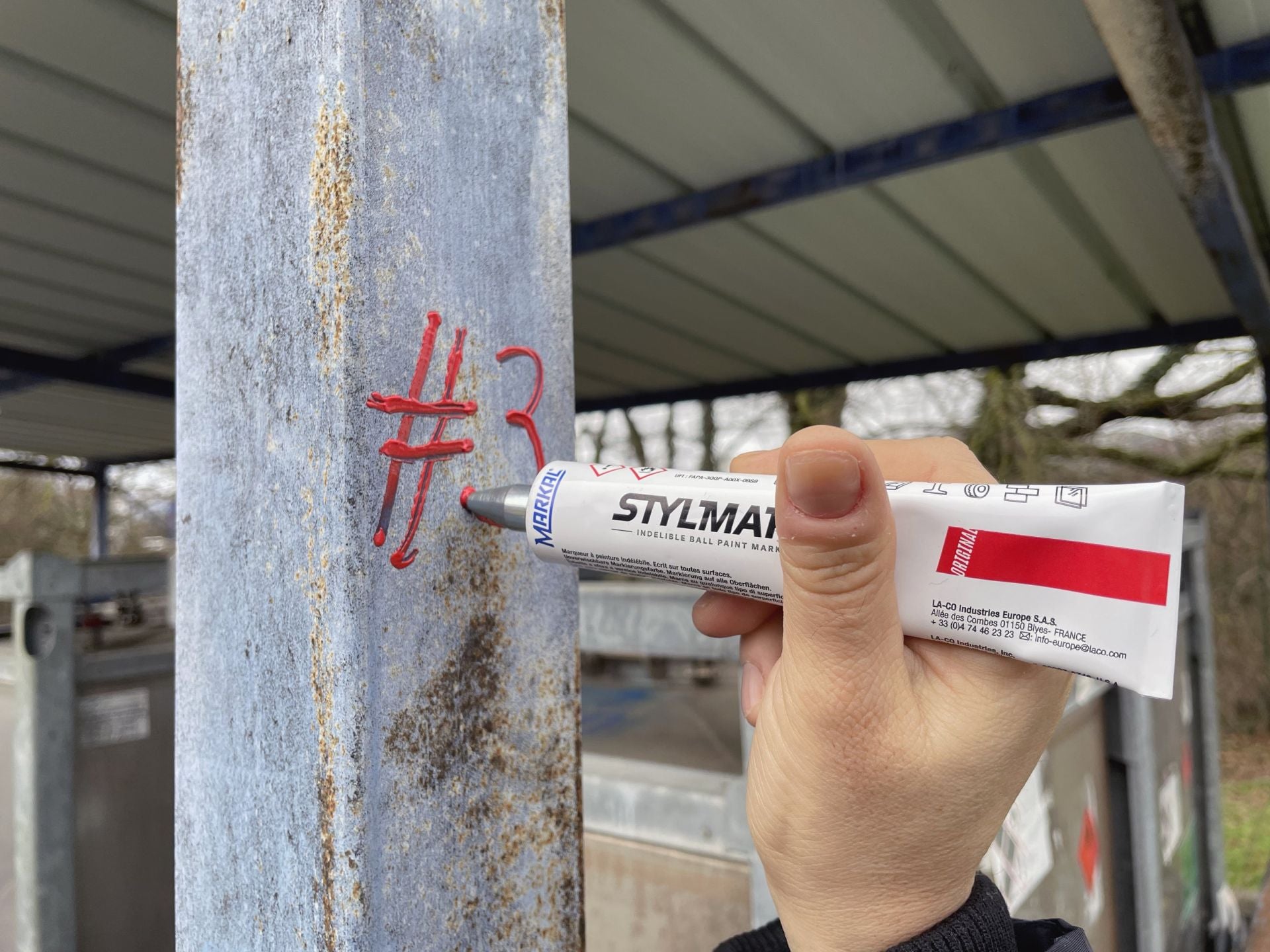 O Markal Stylmark é um marcador com uma ponta esférica metálica de 3mm, o tubo de alumínio e a tinta espessa tornam-no perfeito para superfícies ásperas, verticais e suspensas, com uma boa aderência em superfícies oleosas e molhadas.